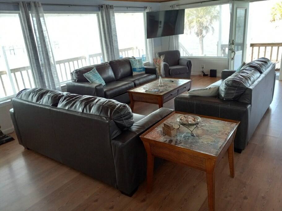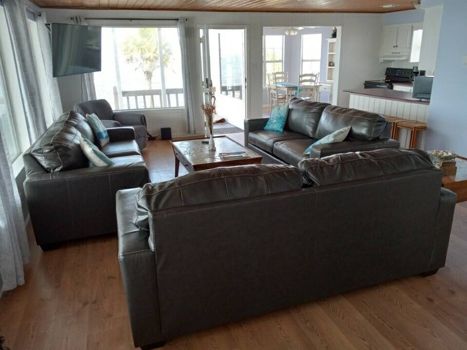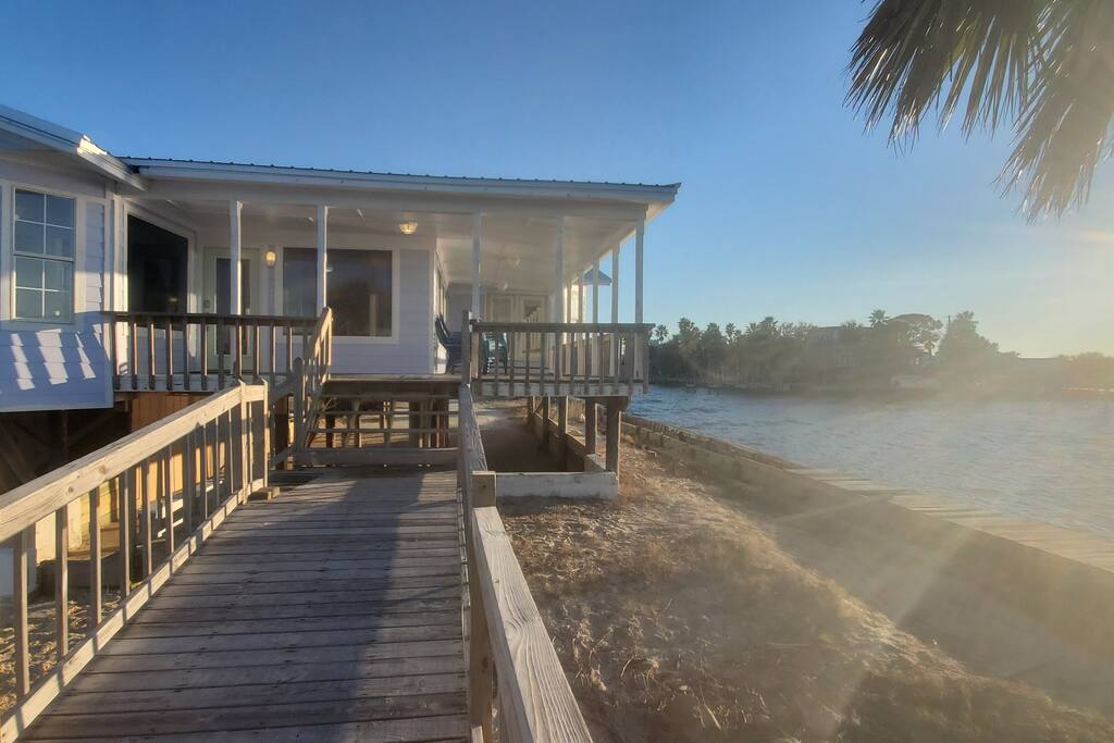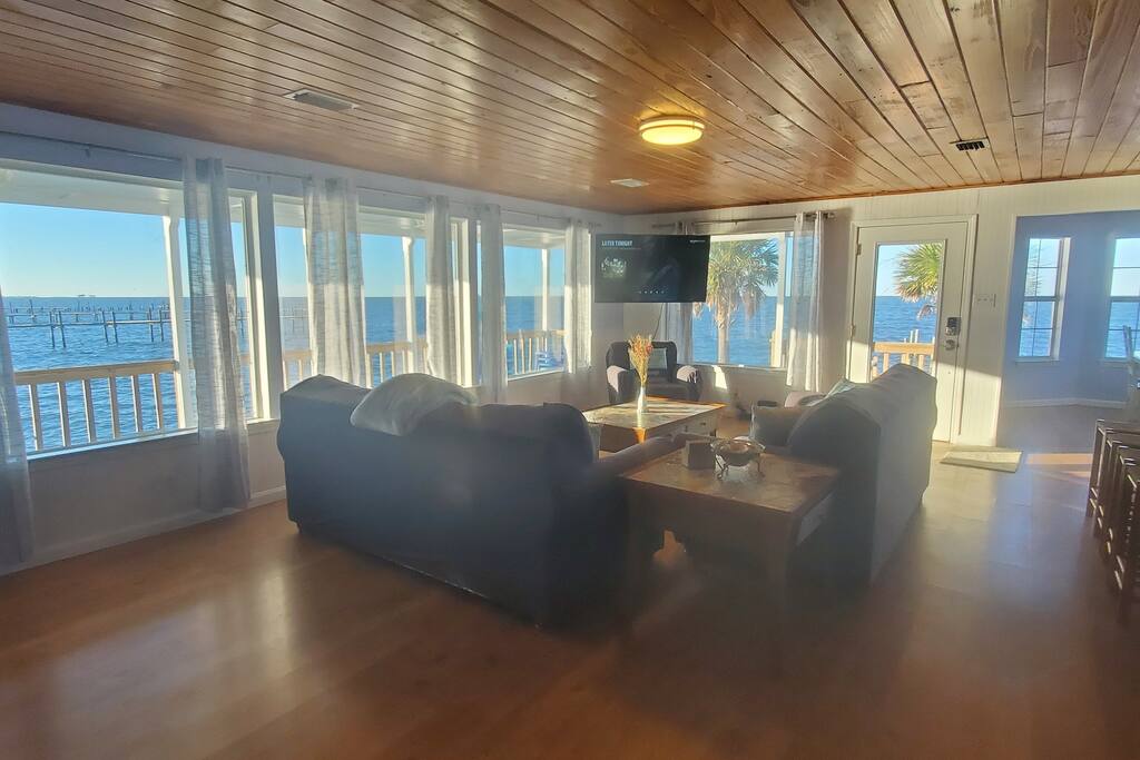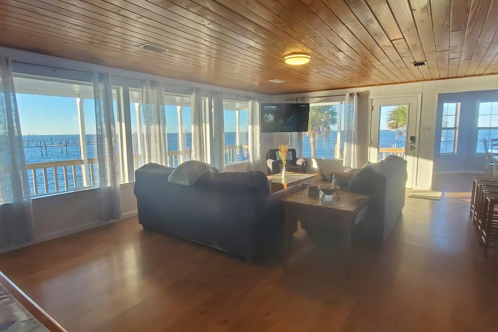 Private cottage! (Sleeps up to eleven adults/ children) 2 bedrooms 3 sleeper sofas 1 single pull out bed 2 full bathrooms Full Kitchen Large Living Room Wrap around porch with awesome sunset views! Saylor's Place is a very unique, warm and welcoming two bedroom, two bath cottage with great fishing (crab, redfish, catfish etc. have been caught here! , beautiful views of the sunsets, dolphins, and a great place to kayak, canoe, wakesurf, ski, paddleboard, etc.!